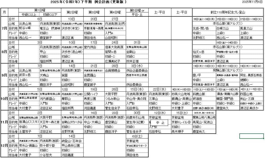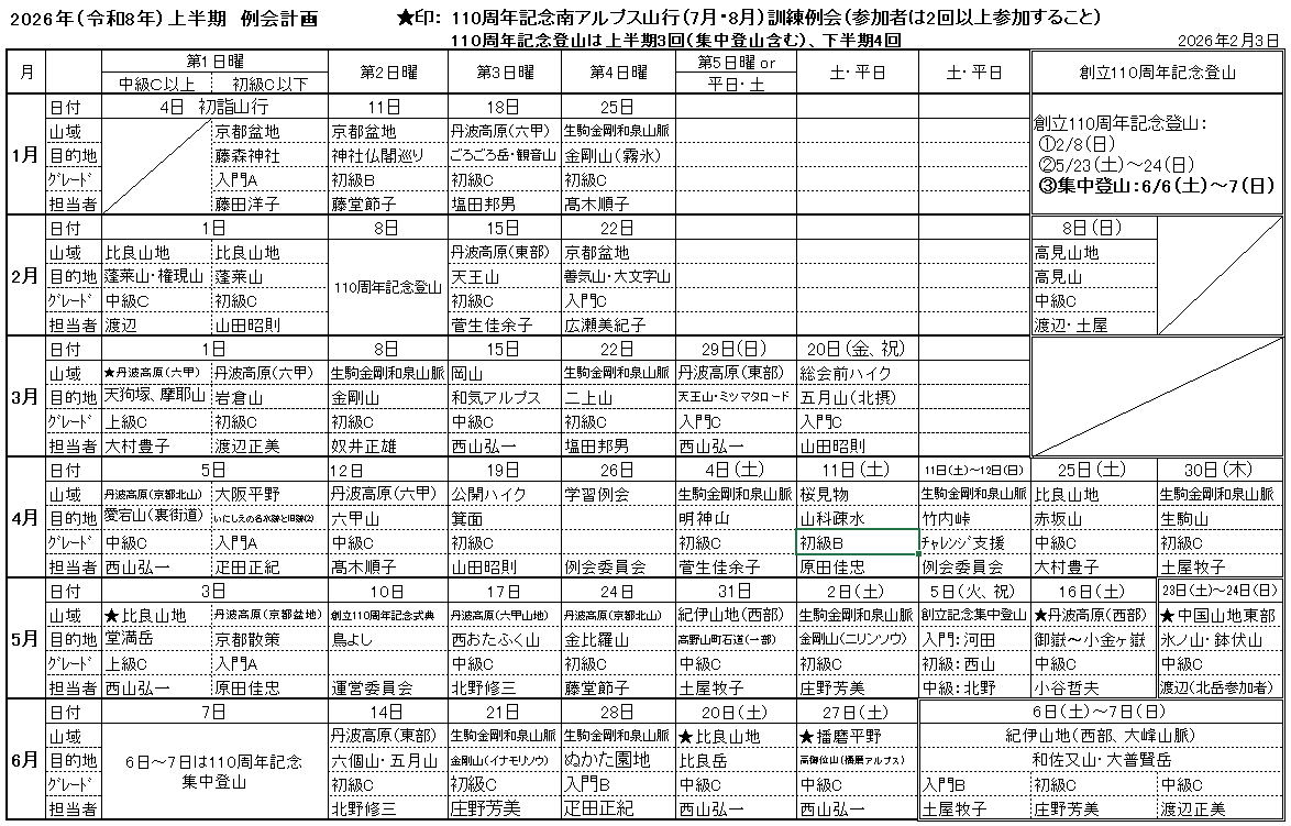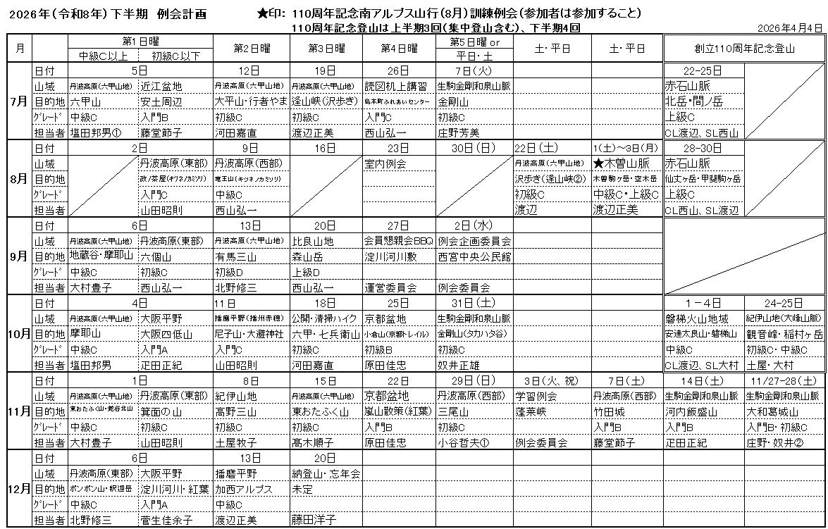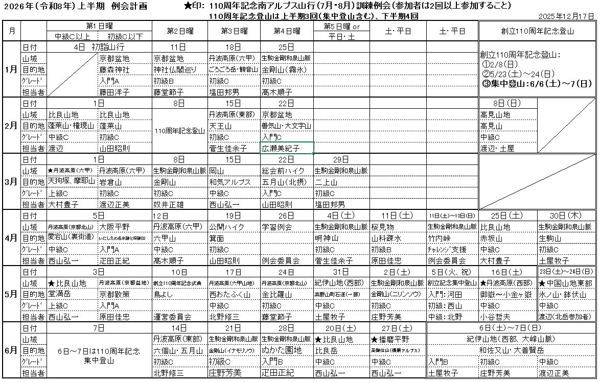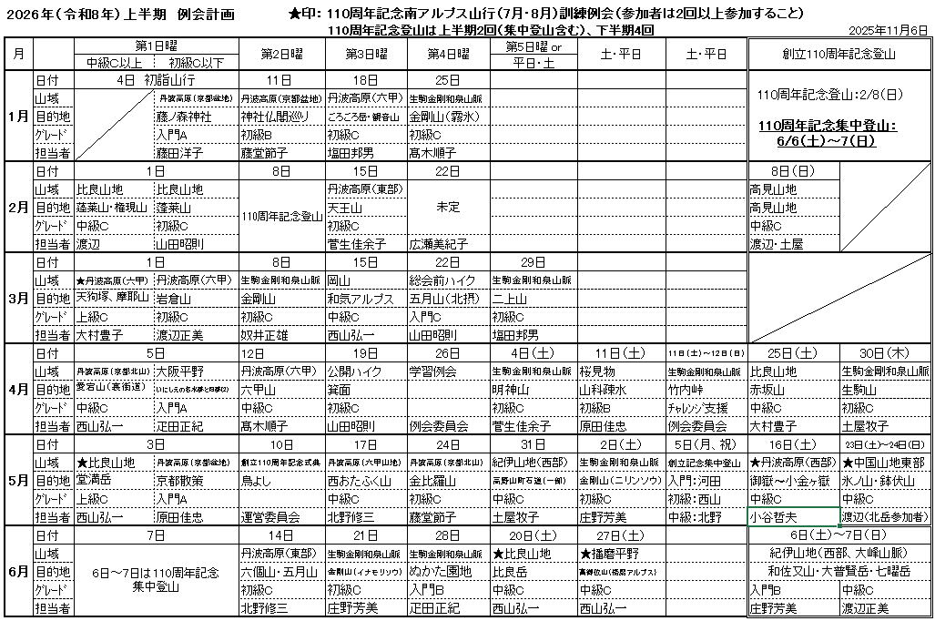 例会計画(案)は、会報掲載の2ヶ月前の15日(各月の1週目に限り3ヶ月前の15日)までに