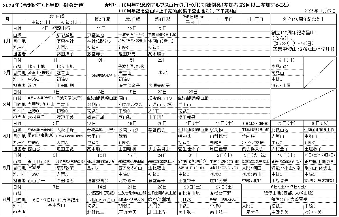 例会計画(案)は、会報掲載の2ヶ月前の15日(各月の1週目に限り3ヶ月前の15日)までに